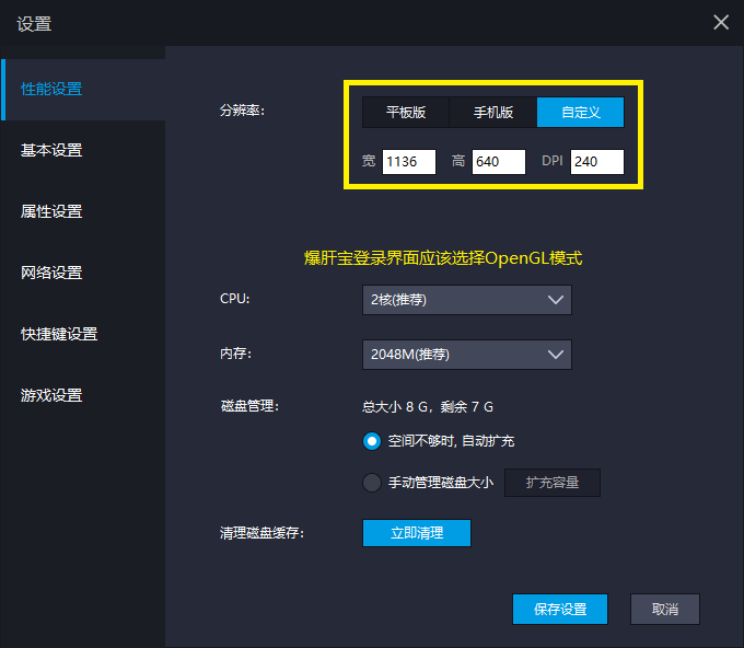 模拟器右上角三条横线,设置中心,显示,分辨率设置改为自定义:1136*640,DPI随意!点击保存后,按要求重启模拟器和爆肝宝即可!
